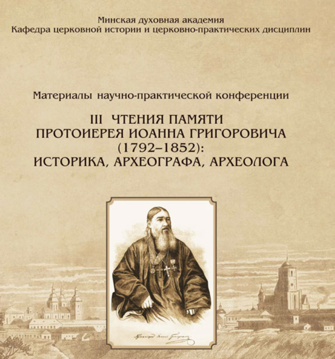 III Чтения памяти протоиерея Иоанна Григоровича (1792–1852): историка, археографа, археолога : Материалы научно-практической конференции, Минск : Минская духовная академия, 13 июня 2019 года. – Минск : Издательство Минской духовной академии, 2021. – 152 с. ISBN 978-985-7145-50-8. III Чтения памяти протоиерея Иоанна Григоровича (1792–1852): историка, археографа, археолога : Материалы научно-практической конференции, Минск : Минская духовная академия, 13 июня 2019 года. – Минск : Издательство Минской...